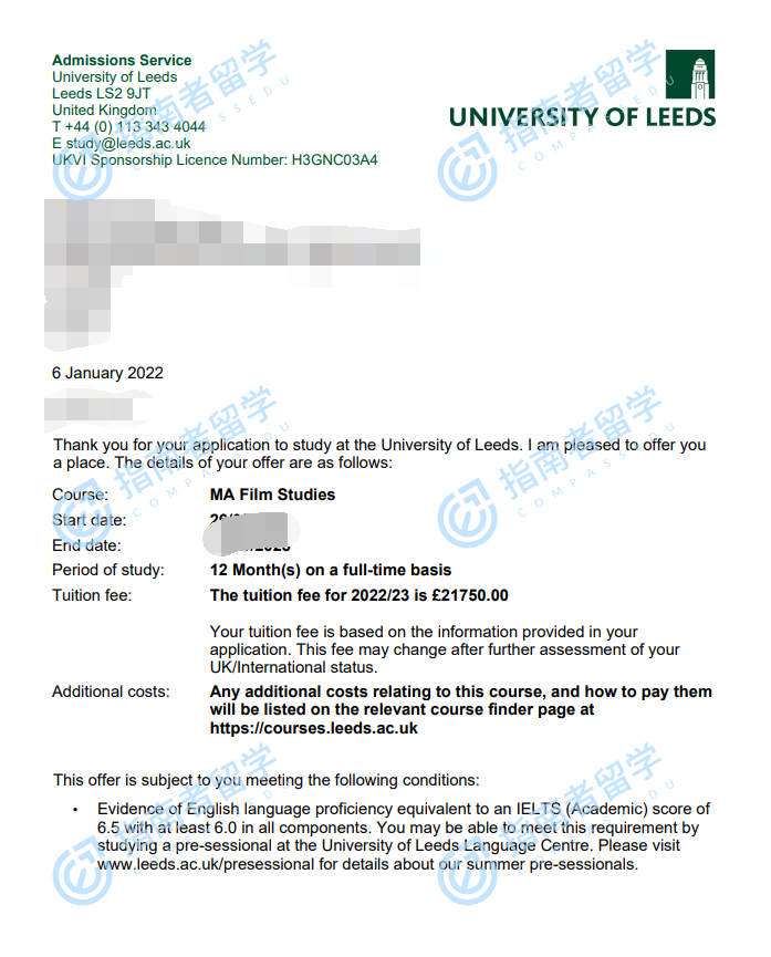 利兹大学电影研究文学硕士研究生offer一枚