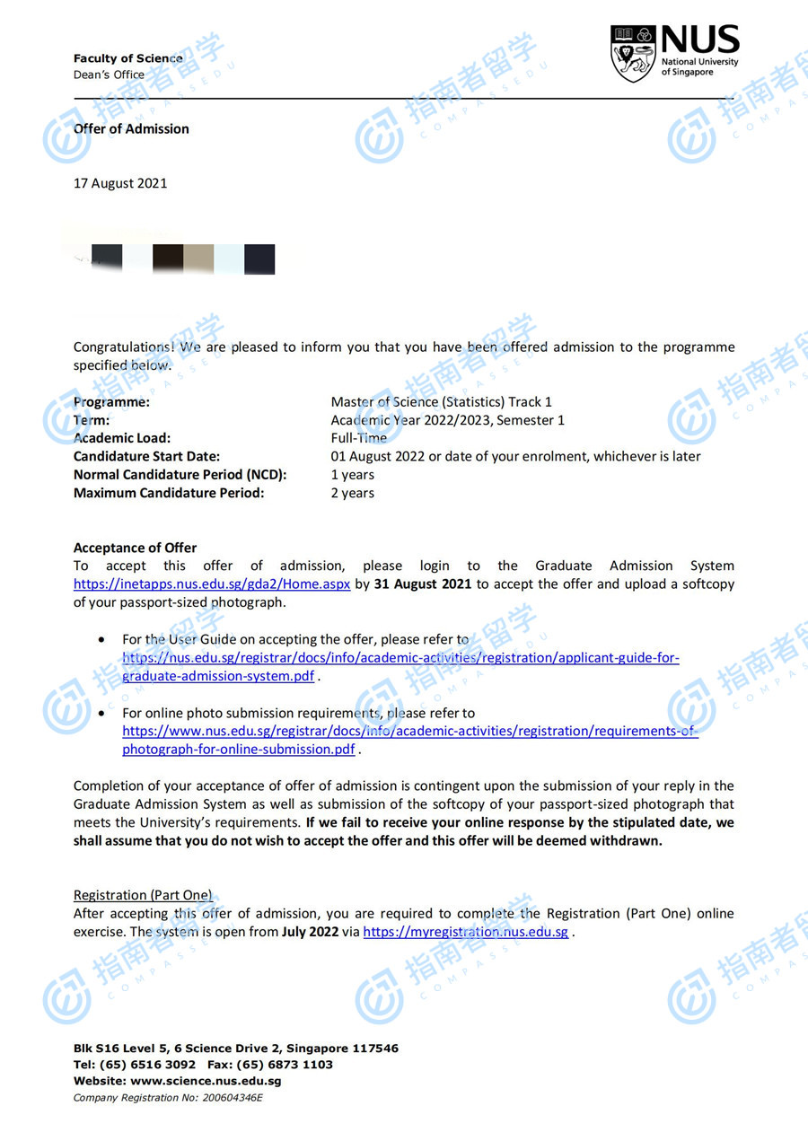 具有荣誉学士学位或4年制学士学位,需要数学、工程学、统计学、生物统计学、定量金融、计算机科学、物理学、经济学等背景<br> 具有3年制学位或其他专业领域学位或资格的申请者在研究生院批准的情况下可根据具体情况被考虑<br> 需要提交存款证明52,000新币