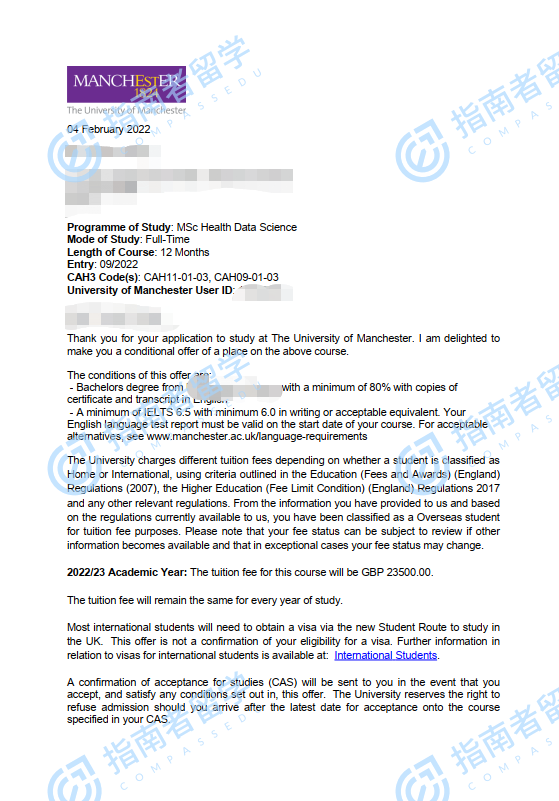 曼彻斯特大学健康数据科学理学硕士研究生offer一枚